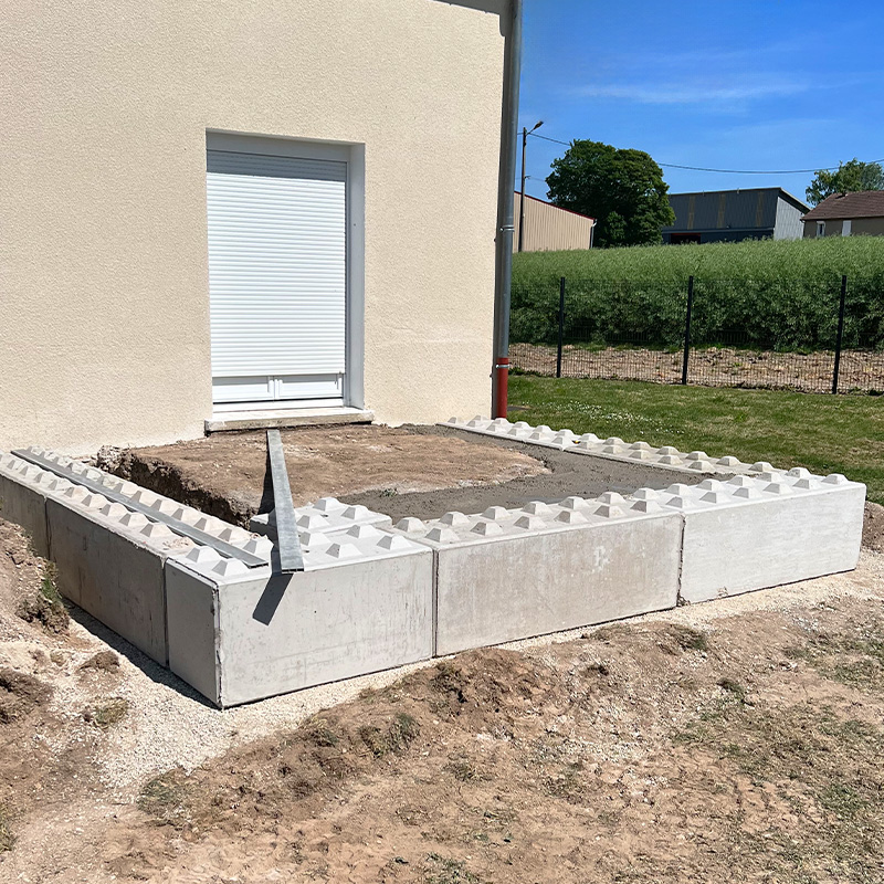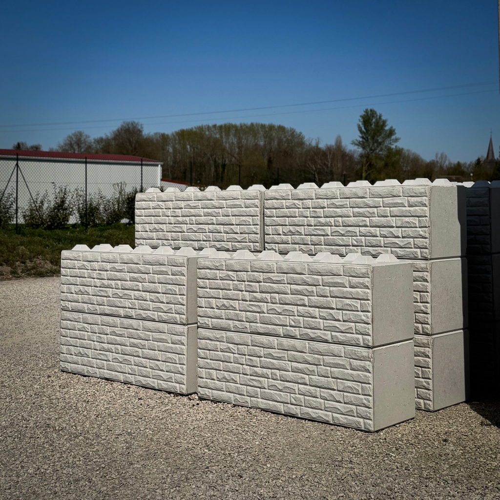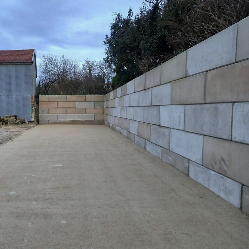 Nos blocs se prettent à la réalisation de toutes sortes de structures définitives comme temporaires : murs décoratifs ou de soutènement, espaces de stockage (silos, box et casiers pour sable, graviers, céréales, engrais), protections de sites (plots et barrières de sécurité, blocs anti-bélier), support de scène...