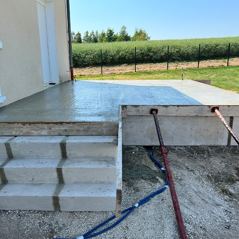 Nos blocs sont constitués d'un béton au ciment CEM II (avec une teneur de 350kg/m3) et à la fibre de verre. Lors du moulage, nous évacuons l'air contenu dans le béton par pervibration pour un meilleur remplissage du moule ainsi qu'un meilleur enrobage de la fibre.
